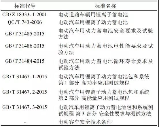 2015年,国家标准化管理委员会颁布了一系列标准,GB/T 31484-2015《电动汽车用动力蓄电池循环寿命要求及试验方法》、GB/T 31485-2015《电动汽车用动力蓄电池安全要求及试验方法》、GB/T 31486-2015《电动汽车用动力蓄电池电性能要求及试验方法》及 GB/T 31467. 1-2015《电动汽车用锂离子动力蓄电池包和系统 第1部分 高功率应用测试规程、GB/T 31467. 2-2015《电动汽车用锂离子动力蓄电池包和系统 第2部分 高能量应用测试规程、GB/T 31467. 3《电动汽车用锂离子动力蓄电池系统测试规程 第3部分 安全性要求与测试方法。