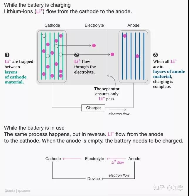 多宝电竞目前最前沿的电池化学是锂离子。大多数专家都同意,在至少十年或更长的时间里,没有其他化学物质会破坏锂离子。锂离子电池有两个电极(阴极和阳极),中间有一个分离器(一种可以传导离子而不是电子的材料,旨在防止短路),还有一个电解质(通常是液体),使锂离子在电极之间来回流动。当电池充电时,离子从阴极移动到阳极;当电池供电时,离子向相反的方向移动。