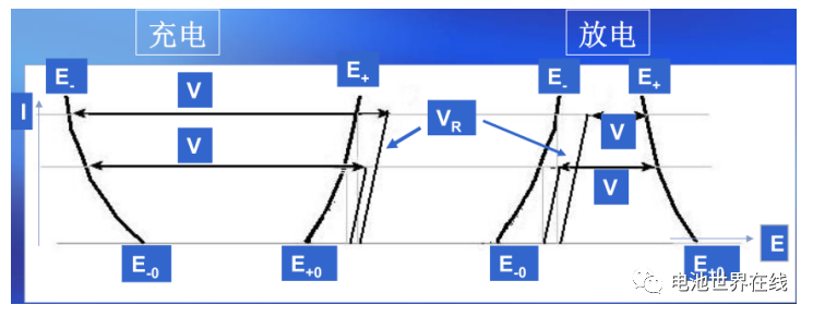 放电:VE- E-- VR =E+0+E-0 + η-- VR